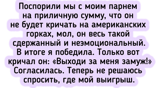Если вы хоть раз заключали пари и выигрывали его, то не понаслышке знаете о волшебном вкусе победы. Нашим героям довелось крайне удачно поспорить. Кто-то получил долгожданный или, наоборот, неожиданный выигрыш. Кто-то — забавное воспоминание. А кто-то, формально проиграв, обрел гораздо больший подарок, например любовь. Рассказываем истории этих счастливчиков и счастливиц. Моя подруга работала журналистом и часто ссорилась с коллегой из другой редакции, так как они не могли поделить время для записи в студии...