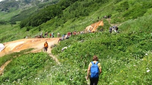 Источники Кислые На высоте 1850м над уровнем моря, в 3км от перевала Адзапш, находится уникальное место, называемое "Кислые источники". Каждое лето, мы приезжаем сюда, чтобы зарядиться энергией гор, и подлечиться целебной водичкой. Пожалуй нигде на всём протяжении Кавказского хребта не встретишь другого такого места, где на крохотной площадке в полсотни квадратных метров было бы полтора десятка источников самых разных минеральных вод у каждого источника свой вкус, не похожий на другие...