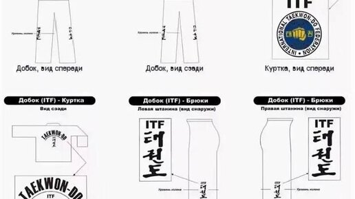 Костюм для Тхэквон-до Сам костюм для занятий называется-Добок для Тхэквон-до Версии ИТФ. Добок состоит из брюк, верхнего предмета одежды и пояса, добок подобен национальной Корейской одежде. Сделан в соответствии с требованиями и стандартами Международной Федерации ИТФ. Добок предназначен для тренировок и соревнований по Тхэквондо ИТФ. Добок для спортсменов и тренеров уровня 1-3 Дан отличается от цветных поясов, чёрной оборкой по нижним краям куртки ,а обладатели 4 дана и выше получают к чёрной...
