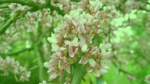 Это декоративное дерево отличается цветками необыкновенной красоты нежного розового цвета, которые распускаются весной до появления листьев. Листья нежного зеленого цвета, немного округленные, также очень декоративные.