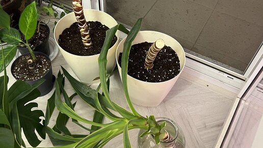 ОБРЕЗКА ЛИСТЬЕВ У ЦВЕТОВ. ПАНДАНУС. ВИНТОВАЯ ПАЛЬМА .ОБНОВИЛА СВОЙ ОАЗИС