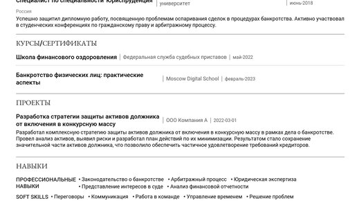 Пример резюме юриста в сфере банкротства 2025 - руководство