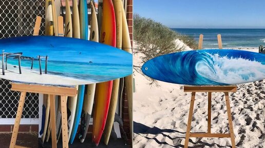 Этим серфбордам место на свалке, однако из них выходят отличные картины. Мы вам показывали, как делают доски для серфинга, но что же бывает с ними, когда они приходят в негодность? Чаще всего они оказываются на свалках, однако их можно превратить в настоящее произведение искусства. Именно так делает Клэр Мари (Claire Marie) из Западной Австралии: она берет старую доску для серфинга и использует ее как полотно для своей картины. В этом есть некая символика: во-первых, это экологично, ну а во-вторых — это лучший способ сохранить воспоминания...