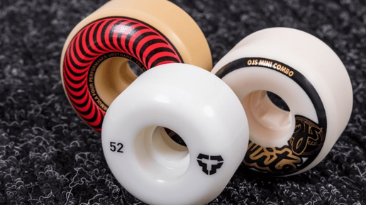 Выбор колес для скейтборда напрямую зависит от вашего стиля катания. Колеса поменьше (50-53 мм) обычно используют при катании на улице, а колеса большего диаметра используют в основном катаясь в скейт-парке. Колеса для скейтборда бывают разных размеров, дюрометра (жесткости) и цветов. В основном для изготовления используется полиуретан (ПУ) - специальный вид пластика с эластичными свойствами, которые обеспечивают хороший отскок колес. Такие колеса лучше реагируют на энергию передаваемую райдером по сравнению с обычным пластиком...