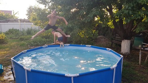 Летом у моей тёщи постоянно торчат мои дети и племянники. Мы поставили у неё каркасный бассейн Intex. Чтобы дети каждый день в нём купались. Этим бассейном мы пользуемся второй год. Такой бассейн стоит около 6 000 рублей. В целом он неплохой, только есть пару неудобств: нужно под бассейн подготавливать основание. Я засыпал песком, но всё равно попадаются какие-то камешки, и плёнка бассейна рвётся. В нашем бассейне уже штук 20 латок, если не больше. Второй косяк, связан со сливом воды. Мы не льём химию, и поэтому меняем воду в бассейне каждую неделю...