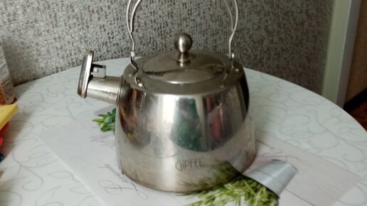 После того, как ручка чайника сорвалась с заклепки, первая мысль у хозяйки купить другой, у автора - установить заклепку заклепочником, но поскольку не было обоих, на ходу пришла другая более рациональная идея посадить ручку на винт. Вставив с наружной стороны винт в стойки и в нарезанную в ручке резьбу, с другой внутренней стороны была накручена гайка...