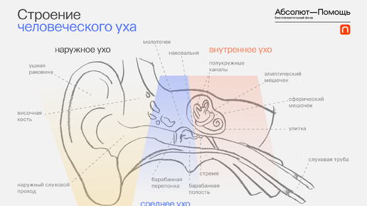 Человеческий орган слуха состоит из трех основных частей. Это наружное, среднее и внутреннее ухо. Наружное ухо и наружный слуховой проход — то, с помощью чего мы «ощущаем» звуки. Ушная раковина улавливает, усиливает звук и направляет его в наружный слуховой проход.