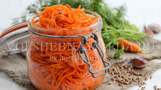 Источник Настоящий рецепт без приправы в пакетиках, только с добавлением молотого кориандра, чеснока и перца. В итоге получится очень вкусная корейская морковка, как на рынке. Активное время приготовления: 15 минут