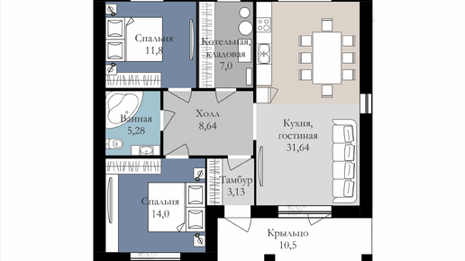 В дневную зону должны входить: тамбур; прихожая; холл; гостиная; столовая; веранда или терраса; туалет...