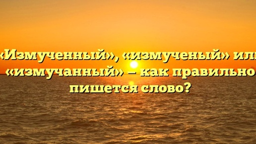 «Измученный», «измученый» или «измучанный» — как правильно пишется слово? Иногда составление текста оказывается не такой уж и лёгкой работой, потому что русский язык содержит в себе такие слова, употребление в письменной речи которых может вызывать трудности. Чтобы не ошибиться, важно усвоить, как именно употребляется: «измученный», «измученый» или «измучанный». Как пишется правильно: «измученный», «измученый» или «измучанный»? В данном случае верная вариация написания – это «измученный»...