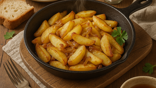 Картошку жарят миллионы людей — каждый день, на разных сковородках, с луком или без, на масле или сале. Но почему, когда на кухне появляется этот запах, все сразу становятся голодными? Почему жареная картошка — простейшее блюдо, но ни одно кафе не делает её так, как дома? Картофель на Руси появился ещё при Петре I, но жарить его начали только в XIX веке, когда появились печи с чугунными сковородками. В деревнях картошку чаще варили или запекали, а жареная считалась «городским блюдом» - быстрой и хитрой едой, требующей масла...