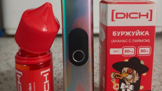 Жидкость от [DICH] - БУРЖУЙКА, со вкусом - ананас с лаймом🍍+🍋🟩 Упаковка и флакон имеют прикольный/интересный дизайн преимущественно бело-красного цвета, объем флакона 30 мл. и запечатан в пленку (значит до меня никто её не открывал🧐), также присутствует вся необходимая информация ❤️ Крепость 20 мг. HARD и это абсолютная правда👍 При открытии чувствуется запах кислого ананаса 😋 Пробовал данный продукт на Xros 5, с испарителем на 0,7 Ом🤠 При вдохе в основном чувствуется кисло сладкий ананас,...