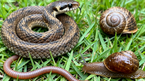 Ползающие животные — это очень разнообразная группа существ, которые передвигаются по земле, изгибая и вытягивая своё тело. У них нет ног или лап (или они очень маленькие), и для движения они используют другие части тела. К таким животным относятся змеи, черви, улитки, слизни, ящерицы, некоторые гусеницы и личинки. Змеи — одни из самых известных ползающих животных. У них нет конечностей, и они двигаются, изгибая своё длинное тело волнообразно. Некоторые змеи могут очень быстро ползать и даже плавать...