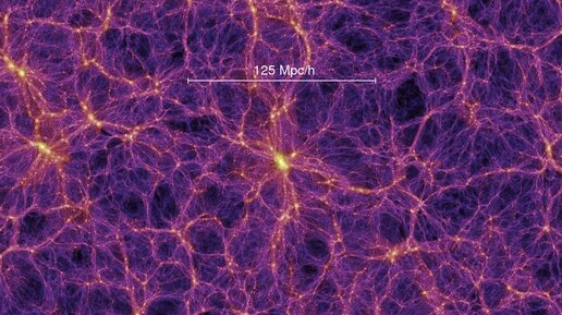 Начнём просто с интересных картинок. Это наша Вселенная. Каждая яркая точка здесь — это целая галактика. Наша с вами галактика Млечный Путь огромна — в поперечнике приблизительно 30 000 парсеков, или 30 килопарсеков. Такое расстояние луч света будет преодолевать 100 тысяч лет. Но на иллюстрации в измерительном отрезочке (он белого цвета) — 2 мегапарсека, то есть 2 миллиона парсеков; этот отрезок примерно в 60 раз больше нашей галактики! А здесь масштаб уже 31 мегапарсек, то есть измерительный отрезок почти в 1000 раз больше нашей галактики...