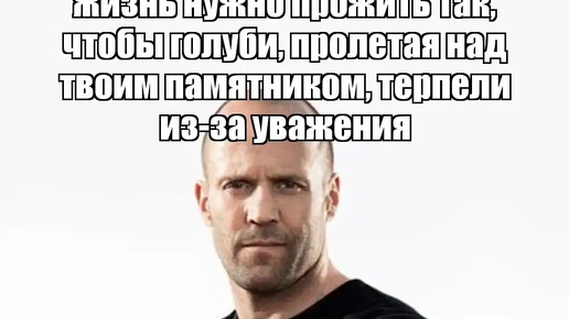 Жизнь нужно прожить так, чтобы голуби, пролетая над твоим памятником, терпели из-за уважения (с) Джейсон Стетхем
