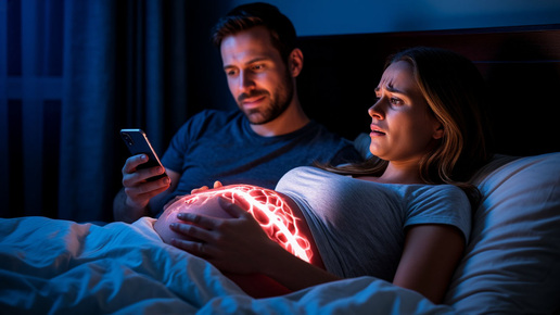 Жена на восьмом месяце. Настя. Двадцать шесть, я двадцать восемь. Вместе четыре года. Ребёнок первый. Беременность шла нормально до седьмого месяца. Потом начались странности. Настя стала говорить что-то не то с ребёнком. Чувствует, говорит. Не может объяснить. Просто знает - не человек там. Я думал гормоны. Переживания. Нормально для беременных. Месяц назад проснулся ночью от звука. Три часа. Настя спит рядом. Слышу - рычание. Тихое. Идёт от её живота. Слушал минуту. Чёткое рычание. Низкое. Вибрирующее...