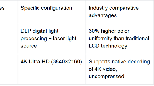 I. Основной визуальный элемент: Дизайн, отражающий технологичность II. Анализ производительности: основные преимущества голографической проекции 1. Технология лазерного источника света: гарантируется высокая яркость и длительный срок службы. • Использование лазерного источника света с тремя основными цветами RGB обеспечивает точность цветопередачи до 98% от стандартной цветовой гаммы Rec.709, что позволяет точно воспроизводить реальный цвет продукта (например, прозрачную текстуру драгоценных камней на ювелирных выставках и металлический блеск автомобильной краски)...