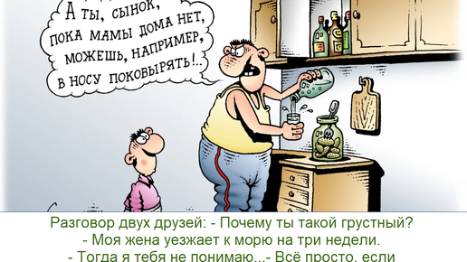 И. Кийко, коллаж "Позитива красок" Приветствую на страницах "Позитива красок", уважаемые читатели! Ну вот и встретились мы с вами в новом выпуске воскресного юмора, который, к слову сказать, не выходил на блоге целый месяц! Сколько выходных пролетело без веселых картинок и шуток! Но ничего, сейчас мы с вами это наверстаем! Подготовила этот выпуск с разнообразными карикатурами и веселыми шутками на все случаи жизни, так, что, как обычно, готовьте свои мимические мышцы, чтобы тренировать их, дать им хорошую нагрузку и улыбаться до самых ушей :) И...