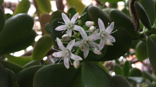 Честно говоря, до вчерашнего дня я вообще не знала, что оно цветет. А вы? И вот вчера увидела пост на ФБ о том, что денежное дерево вдруг зацвело через 13 лет. Да еще как красиво зацвело! Конечно, я заинтересовалась. Всегда считала, что этот зеленый суккулент декоративен сам по себе., но не цветет. Частенько его держат в доме буквально, чтобы водились деньги. Вроде как называют его "денежным" потому что листочки на монетки похожи (мне не похожи, например). По фен-шую дерево непременно должно помочь стать богатым, если за ним правильно ухаживать и ставить в правильном месте...