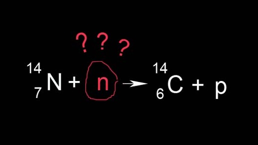 Тепловой нейтрон сталкивается с атмосферным азотом-14 и выбивает протон, заменяя его в ядре. Получается углерод-14. 14N + n → 14C + p + 0,626 МэВ 14C нестабилен, с периодом полураспада 5700±30 лет. Распадается на азот-14 через бета-распад. То есть, без образования нейтрона. В пределах 10 тыс. лет остаётся след распада 14С: Проверяют содержание 14С по кольцам деревьев, где наблюдают гигантские пики содержания 14С. С наибольшей скоростью углерод-14 образуется на высоте от 9 до 15 км на высоких геомагнитных широтах, однако затем он равномерно распределяется по всей атмосфере...