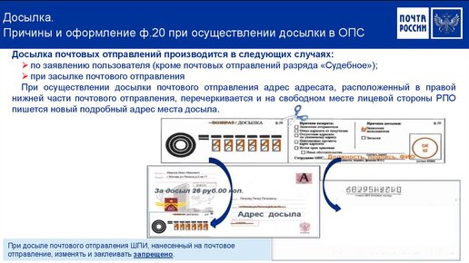 Если почта оформит возврат письма с ошибками и неточностями — для компании это еще одно основание, чтобы доказать, что письмо не получили по вине почты. Частая ошибка сотрудников почты: не приклеили ярлык ф. 20 на конверте, когда отправляли его обратно. Для отправлений разряда «Судебное» он обязателен - в соответствии с п. 11.11. Порядком приема и вручения внутренних регистрируемых почтовых отправлений, далее Правила (утв. Приказом АО "Почта России" № 230-П от 21.06.2022 г.) В соответствии с Постановлением от 22...