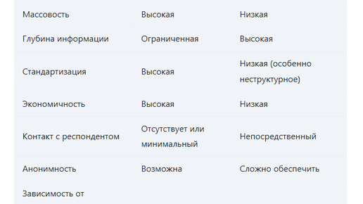 Анкетирование и интервьюирование – это два распространенных метода сбора первичной информации в социологических, маркетинговых, психологических и других исследованиях. Оба метода предполагают опрос людей, но различаются по форме проведения, глубине получаемой информации и другим характеристикам. Анкетирование: Интервьюирование: Сравнение анкетирования и интервьюирования: Когда какой метод использовать: Сочетание методов: В некоторых случаях...