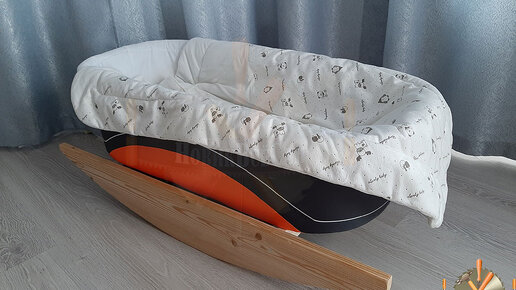 Ни для кого не секрет, что дети очень быстро растут, вот и мой случай не является исключением. Когда супруга пожаловалась на то, что стало тяжело укачивать ребенка на руках, решил смастерить что-то подходящее. Перед тем как приступить к работе проглядел интернет и цены и окончательно убедился, что всё сделаю сам! В своей конструкции за основу взял люльку от коляски, доску 2х9,6 см и брусок 2х4,5 см. Распилил доску на две части, по размеру чуть длиннее люльки. Разместил на полу. При помощи нитки и карандаша нанёс линию в виде полукруга...