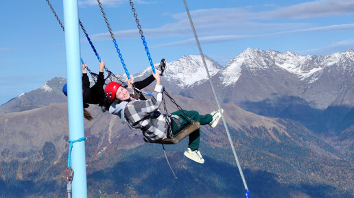Крылатые качели на Розе Хутор. Узнал, насколько безопасен высокогорный аттракцион и сколько это стоит