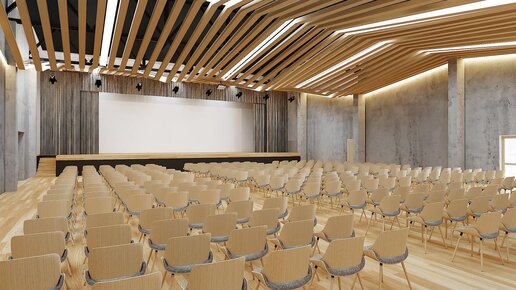 Современный актовый зал в школе – это многофункциональное пространство. Здесь проводятся торжественные мероприятия, концерты, лекции, семинары, конференции, школьные собрания, дискотеки и уроки дополнительного образования. Актовый зал - это настоящий культурный, творческий и общественный центр школы. Место притяжения учеников и педагогов, которое даёт возможность каждому проявить себя. Пространство актового зала должно быть выдержано в общей стилистике школы. Без резких цветовых переходов и контрастов, так как все внимание сосредоточено на сцене...