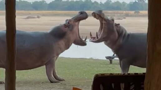 Видео: бегемоты зашли на территорию отеля и устроили схватку