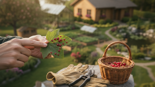 Заметила эту беду в тихий июньский вечер: идёшь к смородине с лейкой, а на верхних листах красной смородины будто бусины проступили, красно-бардовые вздутия, словно кто-то капнул краской и она подсохла бугорками. Переворачиваю лист, а снизу серая ройка мелких насекомых, шевелятся, будто прячутся от света. Это галловая тля. На чёрной смородине она даёт похожие «бородавки», только цвета чуть иные, лист ведёт лодочкой и грубеет раньше срока. В тот год мы недосмотрели, и к концу лета листья преждевременно усохли, да и ягоды мельчали...