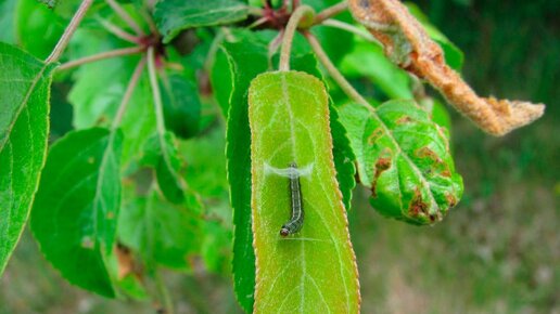 Если у вас на деревьях листья стали скручиваться в трубочки или стягиваются паутинкой в кучу, значит появилась листовертка. От нее надо избавляться, так как поначалу она ест только листья, а при большой численности начинает повреждать и плоды. Определить листовертку несложно: она селится в гнездах из скрученных листьев, и если гусеницу напугать, она выскальзывает и повисает на паутине. Бабочки листовертки обычно летают с конца мая до сентября, иногда до ноября. В этом году листовертка кое-где появилась уже в начале мая...