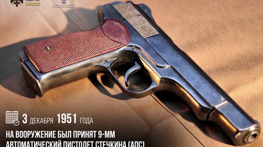 3 декабря 1951 года на вооружение был принят 9‑мм автоматический пистолет Стечкина (АПС)