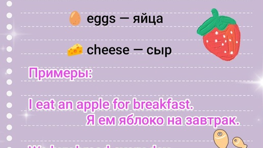 Еда и напитки: учимся говорить о еде на английском! 🍎☕ Как рассказать о своих вкусовых предпочтениях или заказать еду в кафе? Собрали для вас самые полезные слова и фразы на "вкусную" тему! Сохраняйте эти карточки, чтобы уверенно говорить о еде и напитках 🍽️ Краткий словарик: •🍎 apple / banana — яблоко / банан •🍞 bread...
