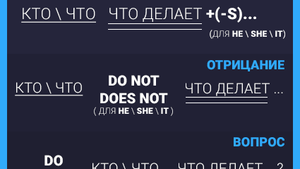Разберемся, как составить предложение в настоящем времени, когда есть смысловой глагол: «Я иду домой», «Он живет в Москве» и научимся делать отрицания и вопросы. В уроке #4 (Составляем предложения на английском) мы говорили о том, как составлять предложения, когда в русском языке нет глагола: «Я счастлив», «Он студент», «Мы дома». Разберемся, как составить предложение, когда глагол есть: «Я иду домой», «Он живет в Москве» и др. Утвердительное предложение Чтобы сделать утверждение, в общем, просто...