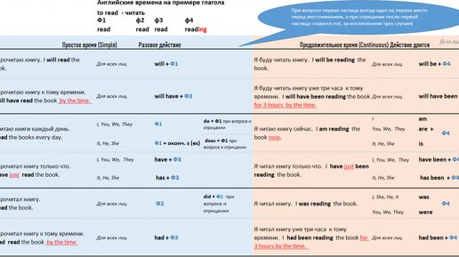 Коротко об английском глаголе Изначально нужно разделить все глаголы в английском языке на три группы: глагол to be, модальные глаголы (их всего несколько штук) и все остальные глаголы. Обычный глагол имеет 4 формы. Ф1 — форма глагола, как в словаре. Ф2 и Ф3 образуется путем прибавления окончания ed к основе глагола, за исключением неправильных глаголов, у которых Ф2 и Ф3 может различаться. Но таких глаголов около 300 штук, вы их легко запомните через практику, так как они самые популярные в речи...