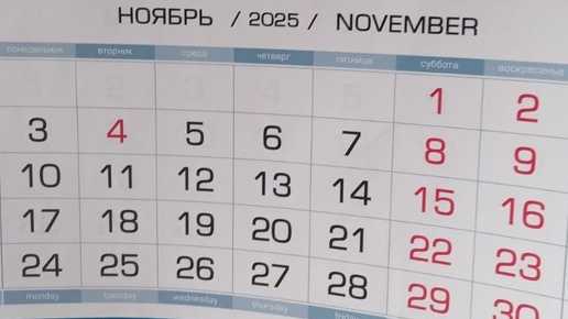 Календарь 2025: как будем работать и отдыхать в ноябре