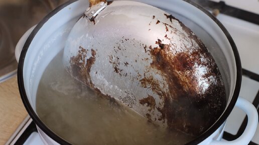 Друзья, всем огромный привет! Сегодня к вам с полезной информацией, хочу поделиться ещё одним рецептом с помощью которого можно почистить сковороду от нагара и липкого жира. Этим советом со мной поделилась моя постоянная подписчица. Под видео, где я рассказывала о средстве "Калмагон" (https://ya.cc/m/DjNJjel) из магазина Светофор она написала, что этим средством пользуется давно и чистит им сковородки от пригара. Она рекомендует: В эту смесь опустить сковороду и кипятить на медленном огне примерно 20 -40 минут (зависит от загрязнения)...