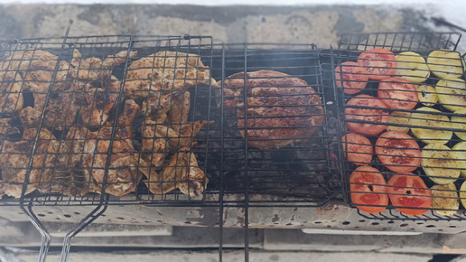 Предыдущий раз я был на даче 17 ноября. Очень жаль, что в средней полосе России климат такой, что не покопаешься на грядках круглый год, не соберёшь пару-тройку урожаев картошки или помидоров, персики и киви приходится покупать в магазинах, а не выращивать самому! :D Но даже зимой можно поехать на дачу, если захотелось мяска с мангала – почему бы не наготовить сразу и для новогоднего стола? Ведь разогретое в микроволновке или духовке мясо с мангала пахнет натуральным дымком и гораздо вкуснее приготовленного...