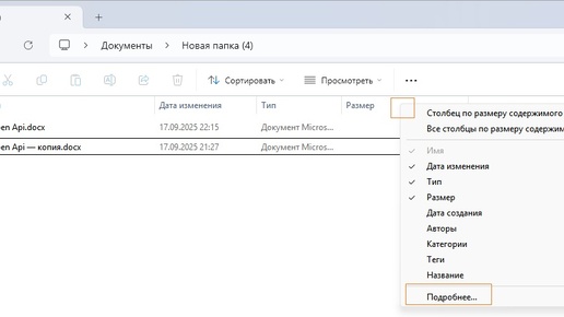 При оформлении акта сдачи-приемки документации в него приходится вписывать количество страниц для каждого документа. Эту работу хочется побыстрее. Можно сделать так: вывести количество страниц рядом с размером файла. Для этого нужно открыть папку с документацией (про Windows речь, если что). Вид расположения файлов - Таблица. Нужно нажать на заголовке столбца таблицы правой кнопкой мыши и в выпадающем окне выбрать "Подробнее". В открывшемся окне...