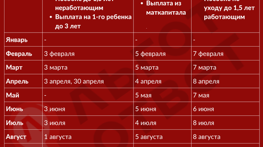 Ежемесячные пособия на детей приходят в России по определенным датам. Рассказываем, какого числа будут поступать детские выплаты от Социального фонда в каждый из месяцев 2025 года. Если вам нужна консультация по пособиям, по юридическим вопросам, звоните по номеру: 8 (800) 511-38-54 (звонок с номеров любых российских операторов — бесплатный). Социальный фонд перечисляет пособия на банковские счета и карты получателей в следующие даты: ✅ 3 числа каждого месяца: ✅ 5 числа каждого месяца: ✅ 8 числа...