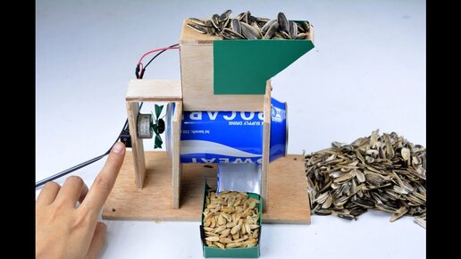 Многие из нас любят щелкать семечки, но порой после длительного щелканья начинают болеть пальцы, да и зубами не хочется щелкать, чтобы не испортить их. Что же делать? Предлагаю научиться сделать своими руками специальное приспособление, которое будет чистить семечки, а вы сможете просто наблюдать за этим и наслаждаться вкусными ядрами. Для данной самоделки нам понадобится: · линейка, ручка, циркуль, · отрезок деревянной панели, · жестяная банка, · тиски, дрель, болгарка, шурупы, пилка, наждачная...
