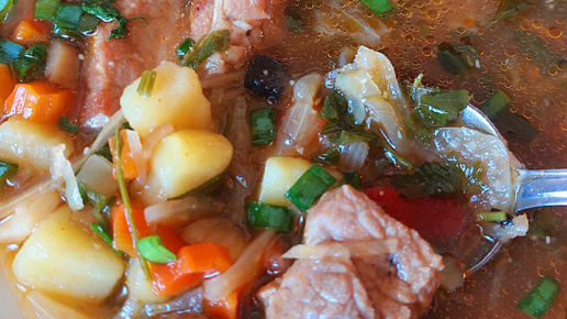 Всем привет! В наше время, всем и всегда не хватает времени) Уж очень быстро оно бежит. Я прекрасно понимаю, что работающим женщинам, некогда стоять около плиты. Поэтому, давайте по возможности упростим рецепт этого вкусного супа. Что нужно? Нужна кастрюля с толстым дном, в которой можно жарить и ничего не пригорит. Я от всей души рекомендую вот эту чудесную вещь! В ней всё получается вкуснее) Я этой кастрюлей очень довольна как повар, и как женщина) Это подарок от Лены. Кроме подходящей кастрюли, я использовала - * 0...