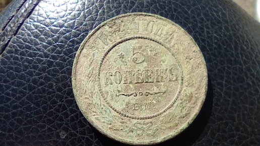 А вот это монета 5 копеек 1874 года: Год - самый обычный, а монетный двор ЕМ. В таком виде она дошла до нашего времени. Если посмотреть на аверс, то видно, что герб довольно четкий, хотя под таким слоем зелени уже давно гнилое поле. Реверс вроде бы выглядит пободрее. Решил я попробовать почистить эту монету. 5 копеек 1874 ЕМ у меня уже есть, но вдруг выйдет что-то приличнее...