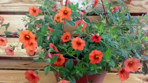 Калибрахоа, как и петунию, можно успешно черенковать. Некоторые экземпляры я забираю осенью домой, чтобы сохранить и размножить. Вот такой красавец, выращенный из семян, нежился прошлым летом на нашей веранде: В компании с двумя другими калибрахоа я перевезла растение домой. До самой поздней осени горшки стояли на балконе, но с наступлением серьезных холодов их все-таки пришлось перенести на подоконник, где им, разумеется, не слишком понравилось. В жарком и сухом помещении из трех растений сохранились только два...