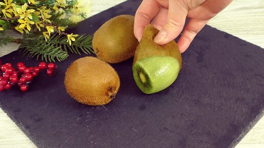 Научилась чистить киви так, что отходы теперь минимальные. Раньше я всегда очищала киви от кожуры как картошку, даже и не догадывалась, что это можно сделать при помощи обычной чайной ложки. Конечно существуют специальные приспособления, которые помогут это сделать, я показываю способ из подручных средств. ✅ Я уверена, Вы умеете чистить киви, но не надо забывать, что есть и начинающие хозяюшки. А так же я уверена найдутся те, для кого этот способ будет новинкой. Для начала у киви надо срезать обе верхушечки...