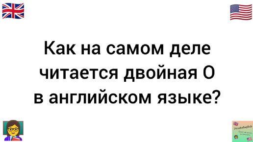 Все мы привыкли читать буквосочетание -оо- двумя способами: 1. долгим гласным звуком [uː], как в слове food [fuːd] – еда 2.коротким гласным звуком [ʊ], book [bʊk] – книга В обоих случаях для произнесения этих звуков мы не вытягиваем губы трубочкой, а оставляем их в нейтральной позиции. Надо отметить, что читаем мы вторым способом только тогда, когда после -оо- идёт согласная буква k: look [lʊk] - смотреть hook [hʊk] - крючок Исключения: good [gʊd] – хороший wood [wʊd] – дерево, деревянный wool [wʊl] – шерсть, шерстяной Существует еще два варианта прочтения двойного о: 1...