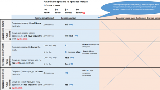 Коротко об английском глаголе Изначально нужно разделить все глаголы в английском языке на три группы: глагол to be, модальные глаголы (их всего несколько штук) и все остальные глаголы. Обычный глагол имеет 4 формы. Ф1 — форма глагола, как в словаре. Ф2 и Ф3 образуется путем прибавления окончания ed к основе глагола, за исключением неправильных глаголов, у которых Ф2 и Ф3 может различаться. Но таких глаголов около 300 штук, вы их легко запомните через практику, так как они самые популярные в речи...