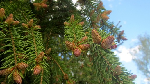 В Керженском заповеднике во второй половине мая на елях появляются красные «свечки», направленные вверх, а на соснах – желтые «колоски». Такое явление в народе называют «цветением», хотя у хвойных настоящих цветков не бывает; семена у них развиваются в шишках. Поэтому «цветение» у хвойных – это процесс образования шишек. Весной у ели и сосны образуется два типа шишек. Из мужских шишек на женские ветром переносится пыльца. Чешуйки женских шишек закрываются, шишки становятся зелеными и свисают вниз...