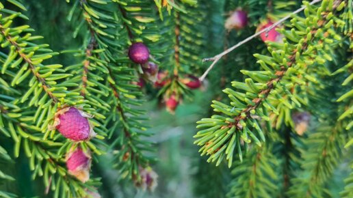 Когда цветет елка: разноцветные приросты и шишки у хвойных
